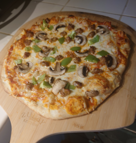 | Divide dough in half and roll out to form your pizzas. Optional: roll out on a sheet of parchment for easier handling. |